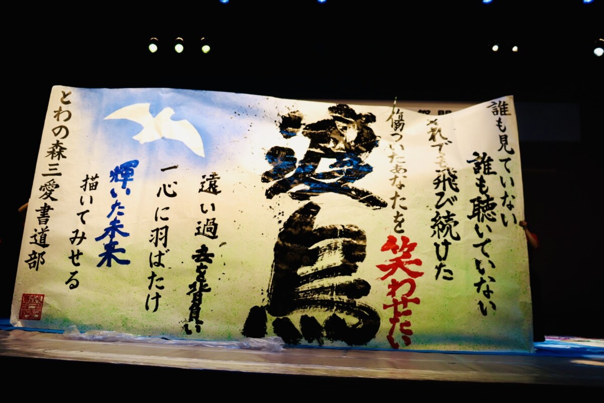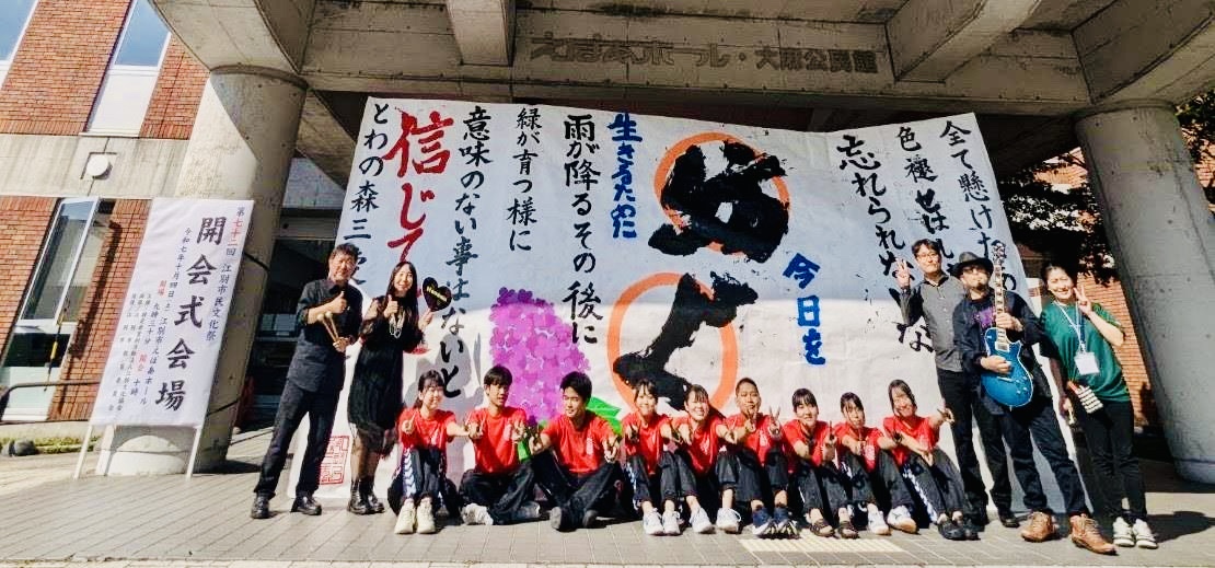 2025年10月4日(土)、書道部が、えぽあホールにて行われた「江別市民文化祭」の開会式アトラクションを担当しました。江別市内のバンドHanamii(はなみぃ)さんとのコラボレーションによる書道パフォーマンスを実施。音楽バンドとの書道パフォーマンスは初の試みでしたが、生演奏特有の迫力・臨場感・情熱のおかげで、唯一無二の書道パフォーマンスを江別市民の方に披露することができました!本校教職員、部員の家族、本校卒業生等多くの方に見守って頂き、無事終えることができました!ありがとうございました!