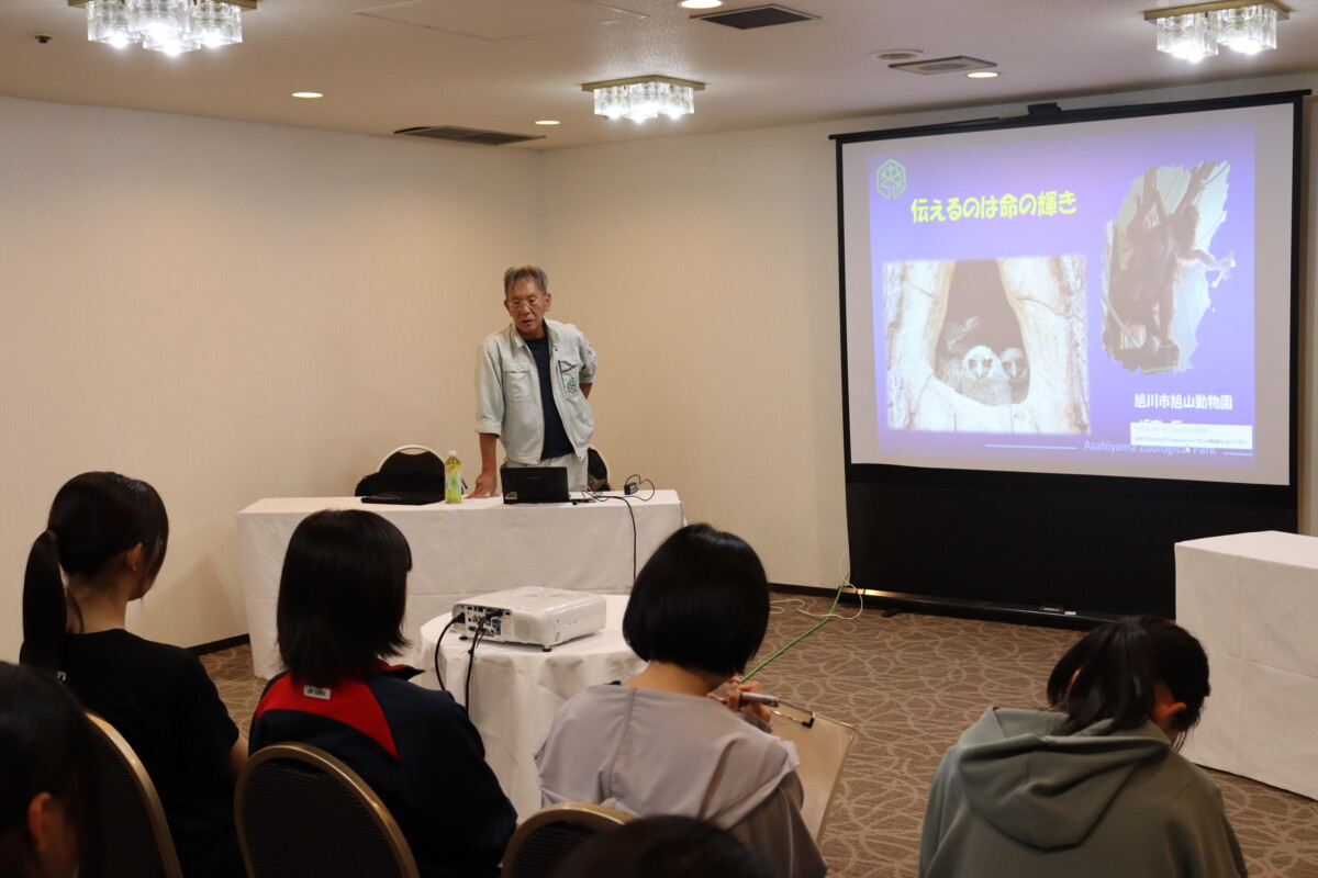 ・夜に宿舎にて、旭山動物園の坂東氏による特別講演で、動物園の役割や現代が抱える野生動物に関わる諸問題を学ぶ