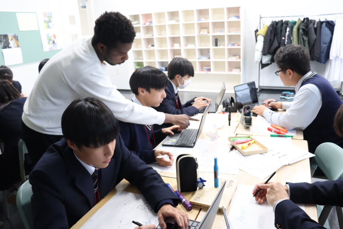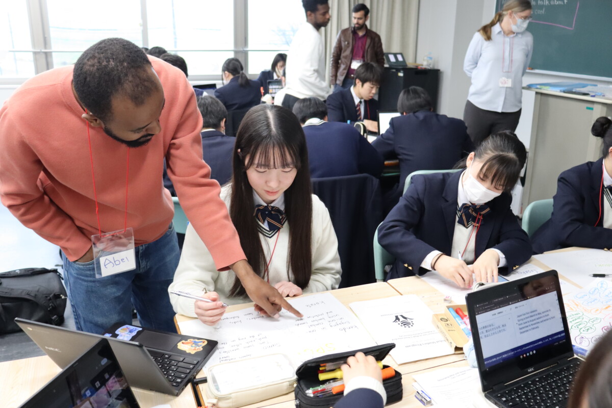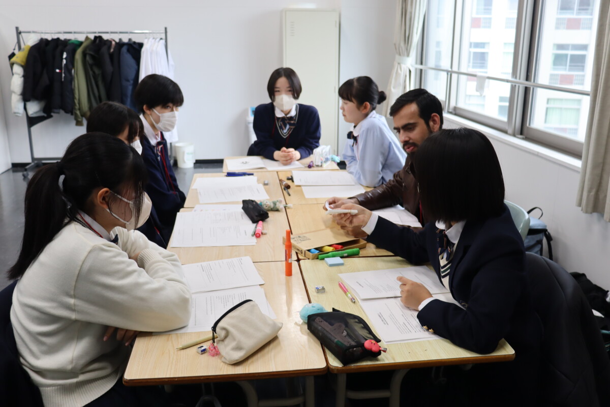2年生は、11月10日・11日の2日間で「グローバル・スタディーズ・プログラム」を実施しました。今回のプログラムは、昨年度に行った「サイエンスイマージョン」と同様に、ネイティブスピーカーとの交流を通して英語によるコミュニケーション力の向上を図ることを目的としています。特に、1年生が参加した「サイエンスイマージョン」よりもネイティブとのコミュニケーションの機会が多く、交流活動やSDGsに関するディスカッションを通じて、英語を話す時間が大幅に増えています。
