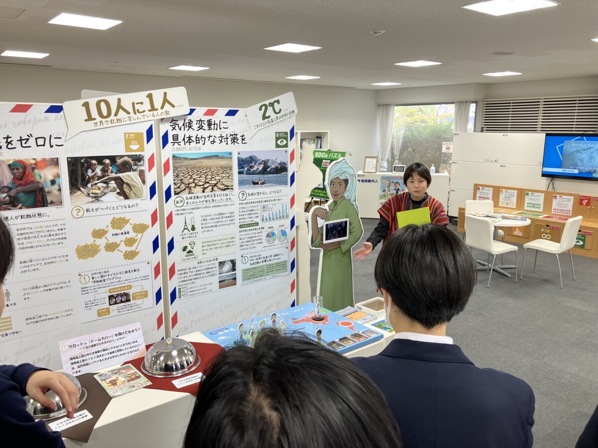 さらに、「地球ひろば」で世界の貧困や教育などの諸問題を展示を通じて学びました。この学びは、今後行うモンゴルの高校生とのオンライン国際交流で、気候変動に対するアクションプランを共に考えるための貴重なヒントとなりました。
