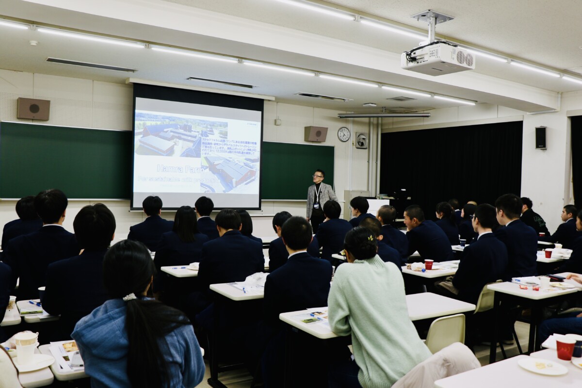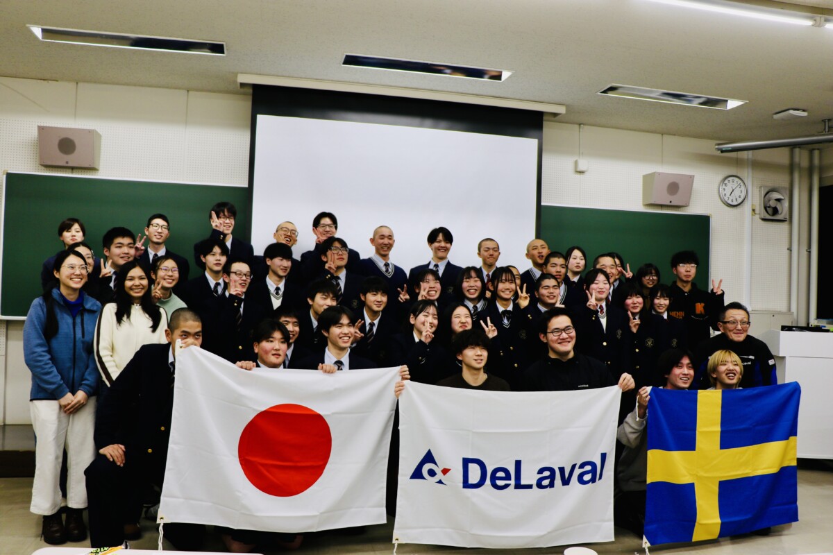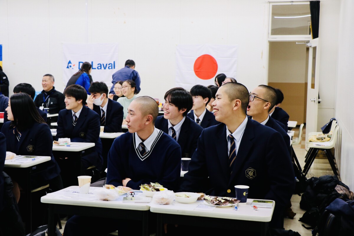 2026年1月30日(金)、機農コース1・2年生は、「ヨーロッパDay」に参加し、FIKA(フィーカ)を体験しました。この企画は、酪農学園大学国際交流課とスウェーデンに本社を置く酪農機器メーカーのデラバル社とのコラボイベントです。FIKAとは、コーヒーやお菓子を楽しみながら、リラックスした雰囲気で、気軽におしゃべりするスウェーデンの習慣を指します。この日は、シナモンロールやチーズを食べながら、欧州の酪農業や家畜福祉、社会制度、またスウェーデンをはじめ北欧諸国の生活・文化の紹介等の講演を聴き、参加者から様々な質問や意見交換がなされました。大学生や海外留学生も参加しており、高校生にとっても海外酪農事情や文化等を学べた非常に有意義な時間となりました。