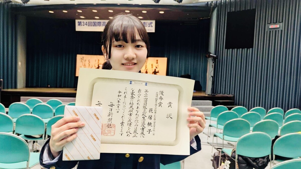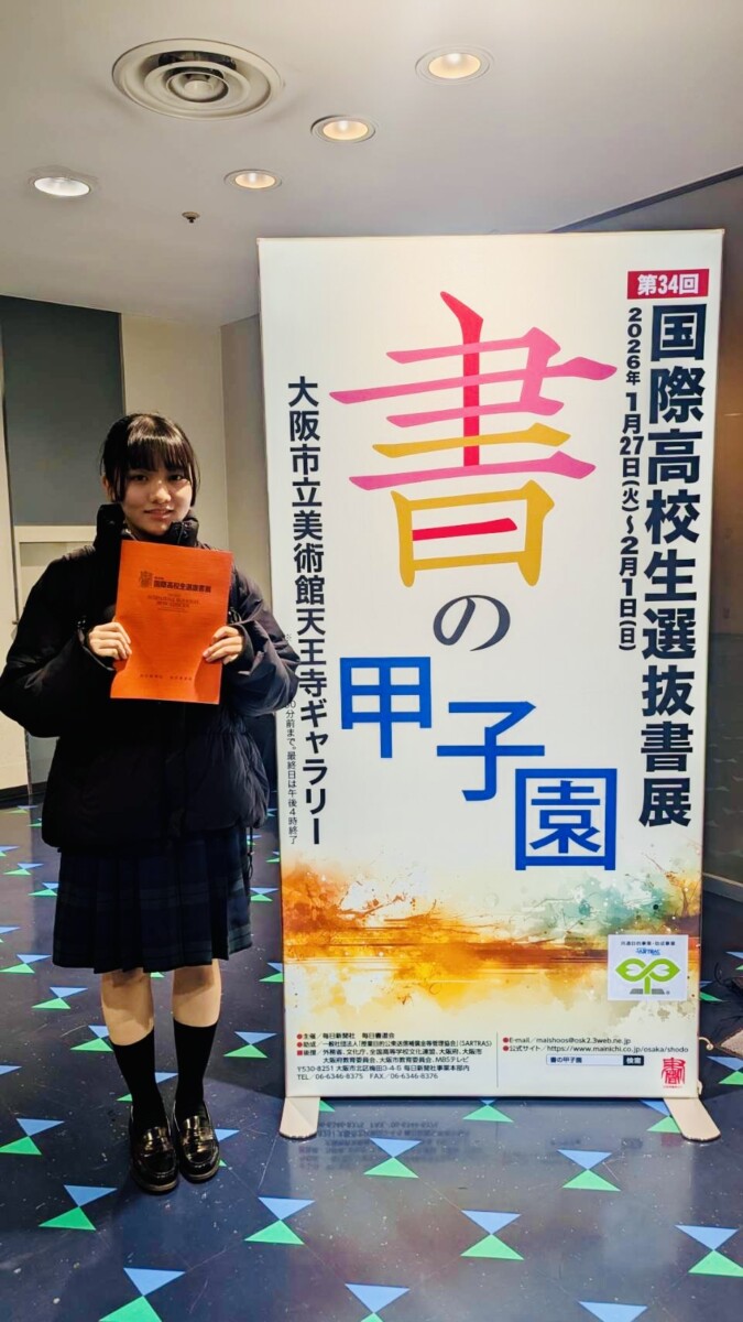 第34回国際高校生選抜書展(書の甲子園)にて、書道部の花房桃子さんが優秀賞(全国第5位)を受賞!