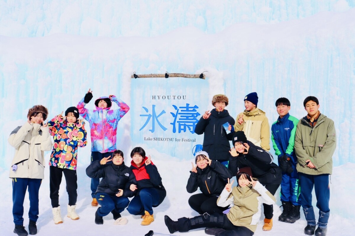 トップアスリート健康コース2年生、コース行事(スノーシュー体験と支笏湖氷濤まつり見学)を実施! Date:2026.02.03 2月3日(火)、トップアスリート健康コース2年生は、コース行事を行いました。専門競技以外のスポーツにも親しみながら、北海道ならではのウィンタースポーツ体験と自然が生み出す美しい景観に触れることができました。滝野すずらん丘陵公園でのスノーシュー体験では、雪に覆われた森の中を仲間と声を掛け合いながら歩き、冬の自然を全身で感じる姿が見られました。また、千歳・支笏湖氷濤まつりでは、氷と光が織りなす幻想的な景色に生徒たちも感嘆の声を上げ、北海道ならではの「自然がつくる芸術」を楽しんでいました。体験等を通して、生徒同士の交流も深まり、クラスとしての一体感や帰属意識が高まる、有意義な一日となりました。 記事一覧へ