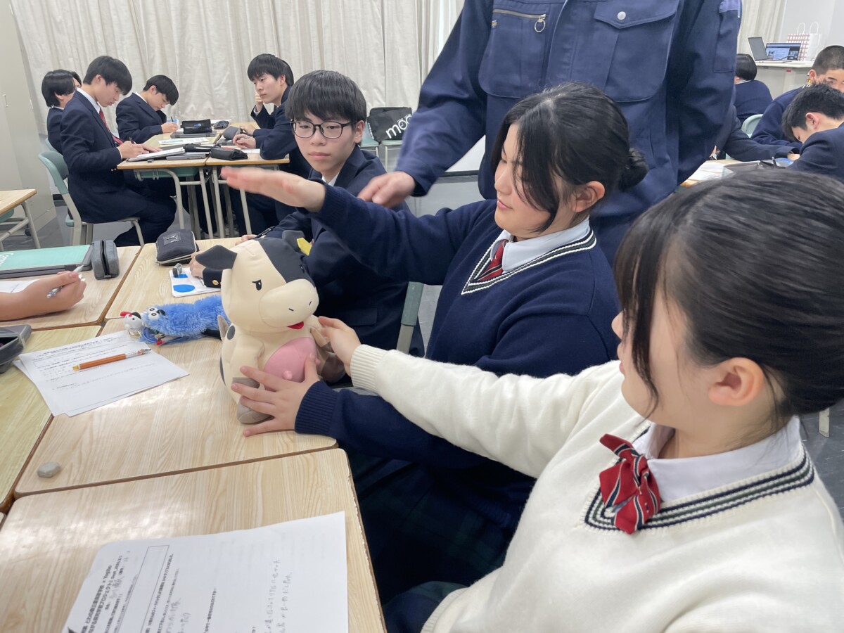 本企画は、「酪農学園のオリジナルグッズを考える」ワークショップにおいて、本校機農コースの生徒から「身近な商品を通じて学園の魅力を伝えたい」という提案がなされたことをきっかけに、株式会社Yogibo様との共同企画として実現したものです。 生徒たちは株式会社Yogibo様による特別授業を複数回に渡って受け、商品開発の考え方やデザインのプロセスを学びながら意見を出し合い、「牛の魅力をどのような形で表現すれば伝わるのか」を真剣に考えてきました。耳の形や表情、全体のフォルムなど、細部にまで高校生の視点が反映されたデザインとなっています。