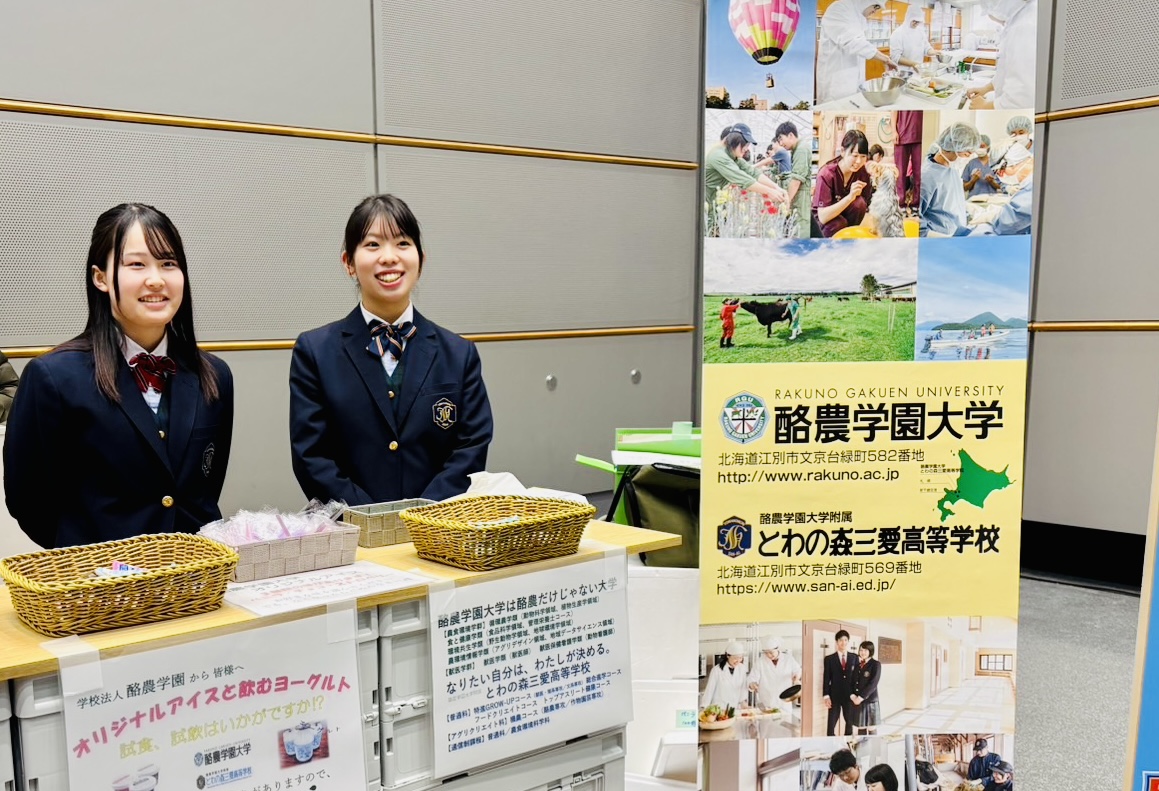 2026年3月22日(日)、機農コース生徒が、札幌コンベンションセンターで開催された『EXPO!t~時代をつくる「時間・空間・人間」の創出~』イベントに参加しました。酪農学園大学循環農学類の日向教授を講師に迎え、「食の持続可能性」について、他校生徒と考えや経験を発表・共有し、地域の未来に向けた課題について議論しました。会場では、酪農学園大学のアイスや本校の飲むヨーグルト、牛さんハイチューも振舞われ、大盛況でした。沢山のご来場、ありがとうございました。参加した生徒の皆さん、お疲れ様でした。