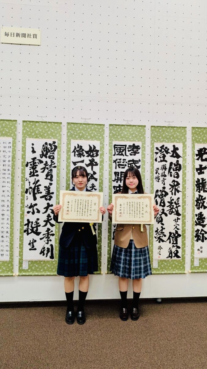 2026年3月14日(土)、第62回創玄展表彰式が東京で開催され、書道部の花房桃子さんと亀井椿さんが二科賞を受賞しました。翌3月15日(日)は、第62回全国学生書道展の表彰式も行われました。同2名の作品と共に、奨励賞受賞の和野玲花さんの作品も東京都美術館に展示中です。