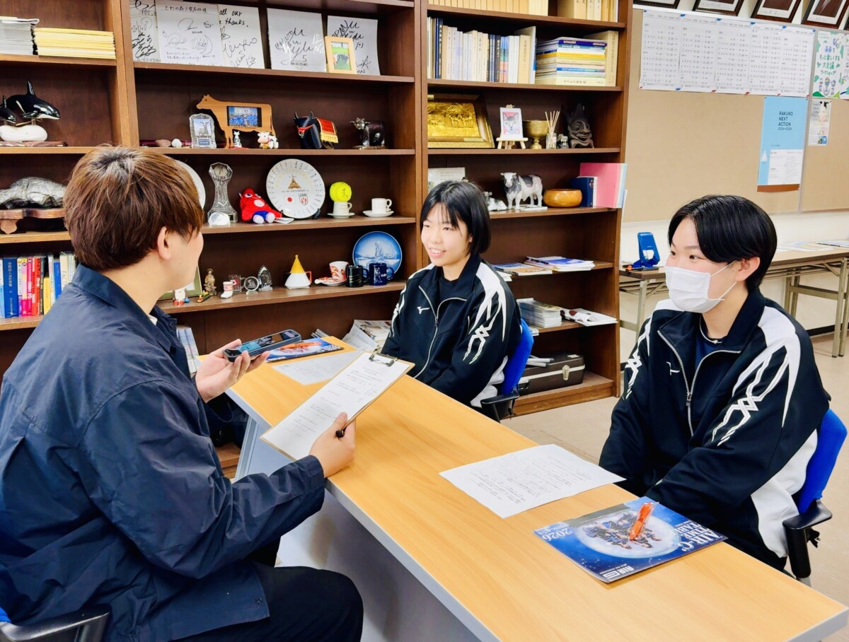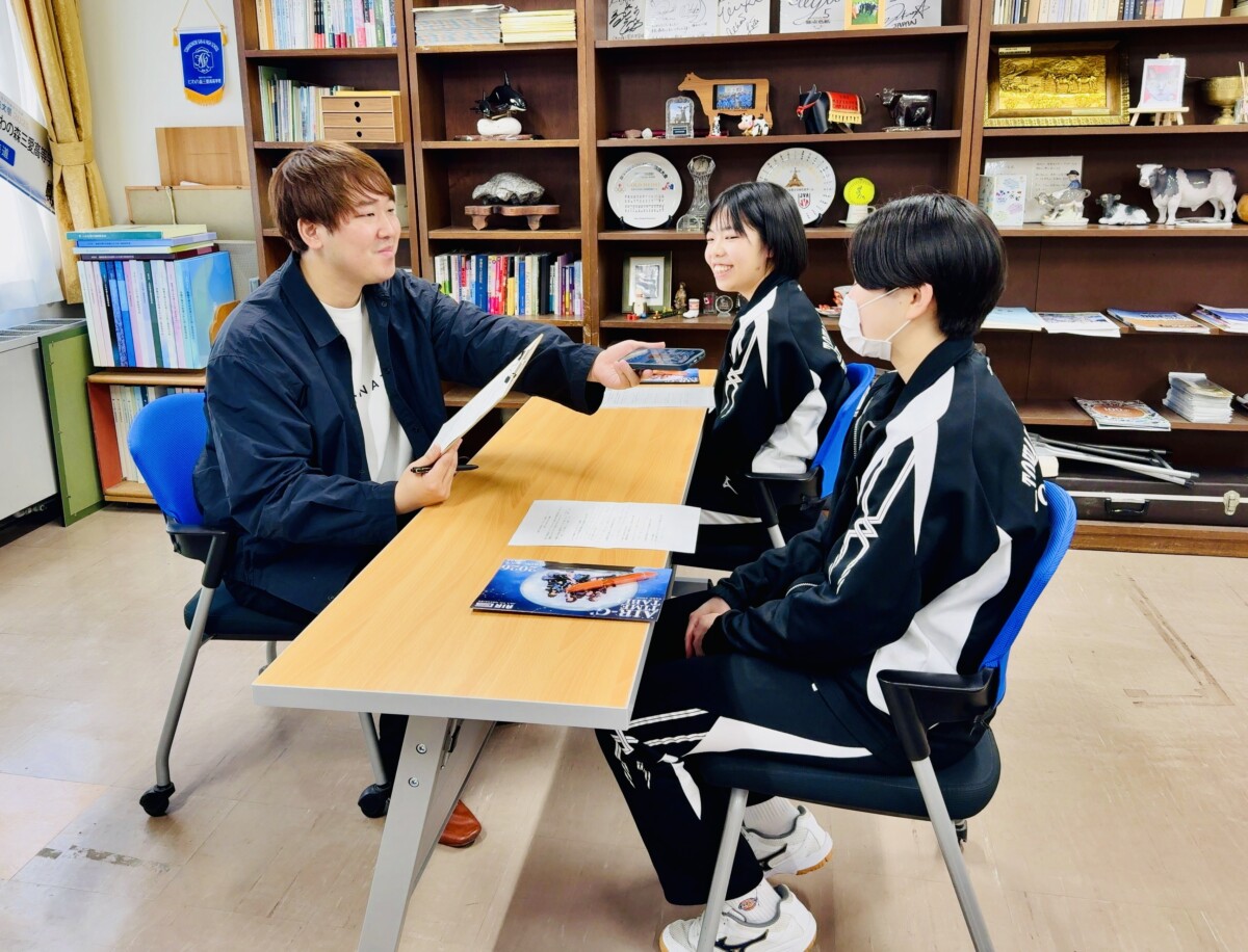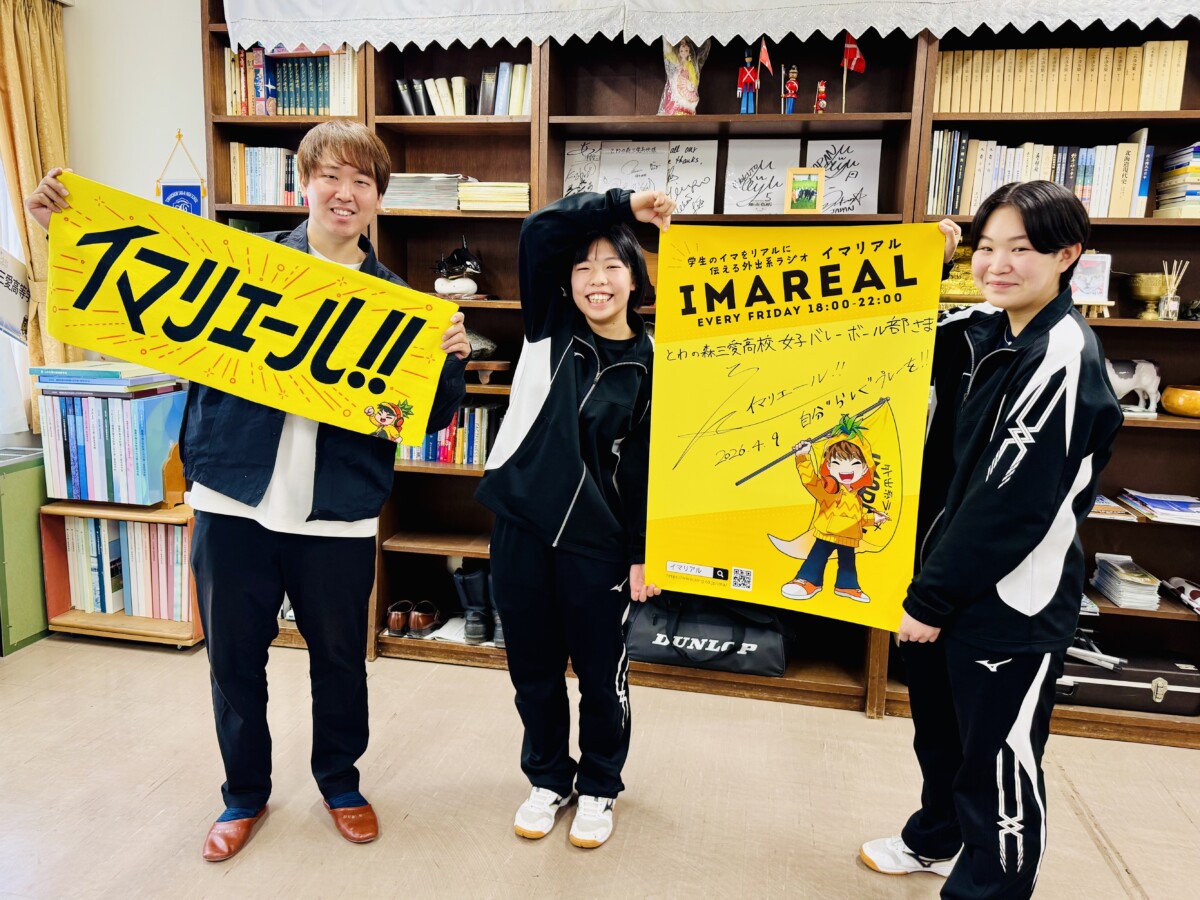 2026年4月10日(金)、森本優さんがパーソナリティを務めるAIR-G’(FM80.4MHz)のラジオ番組『イマリアル』(18:00~22:00)で、女子バレーボール部の小松夏奈海さんと岡本陽向さんが出演(録音)しました。同番組は、今年で10周年を迎え、番組開始当初から本校生徒が度々出演させていただいています。森本さん、取材ありがとうございました。